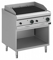 Корпус, как правило, изготавливают из обычной стали, а саму поверхность — из чугуна или углеродистой стали не тоньше 12 мм. Это придает оборудованию прочность и предохраняет от повреждений при работе с посудой. На рабочей зоне есть желоб для сбора жидкости, выделяемой при готовке, а для того, чтобы было проще это очищать, предусмотрены съемные лотки. Рифленые поверхности обрабатываются паром для удаления жира, который может скапливаться в бороздках.